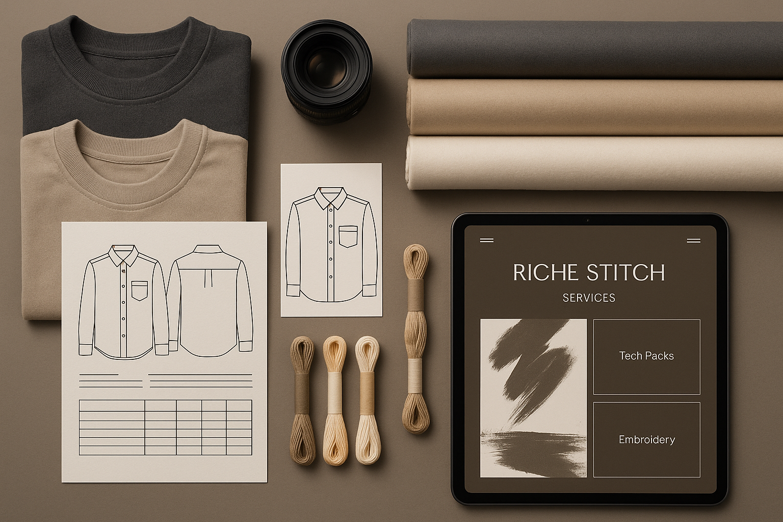 Riche Stitch offers an ecosystem of specialized services that support every stage of brand development and apparel production.